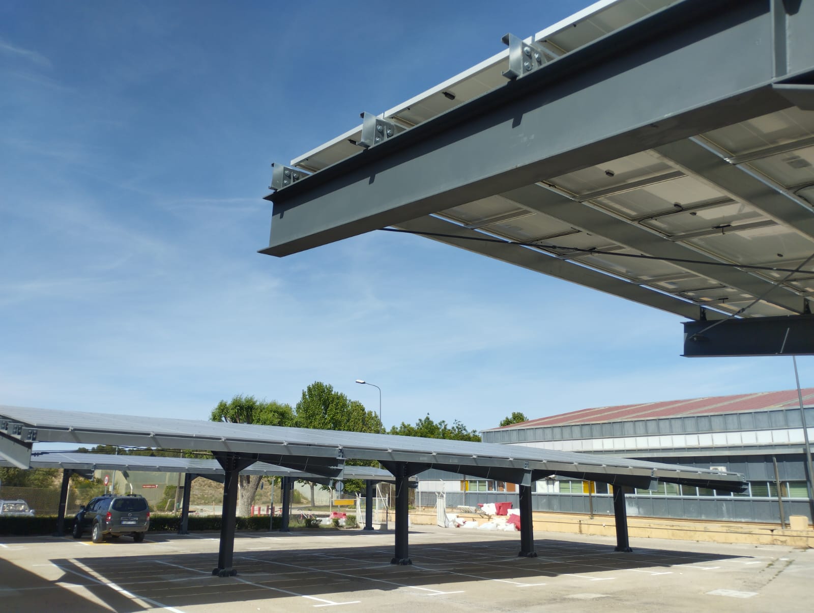 Execution of photovoltaic installation on 3 canopies, with a total power of 84 KWp. Formed by 153 solar modules of 550 Wp and 2 inverters of 40 KWn.