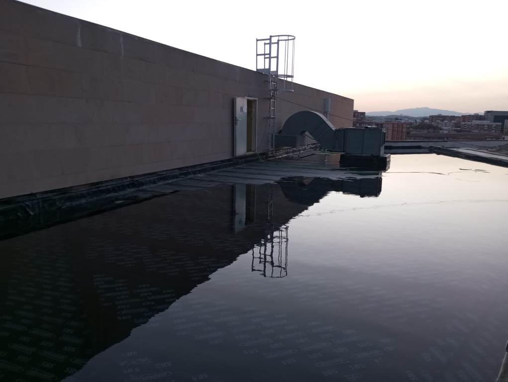 Realización de las pruebas de inundación de la impermeabilización, certificadas por el laboratorio MASSALIA INGENIEROS, S.L.