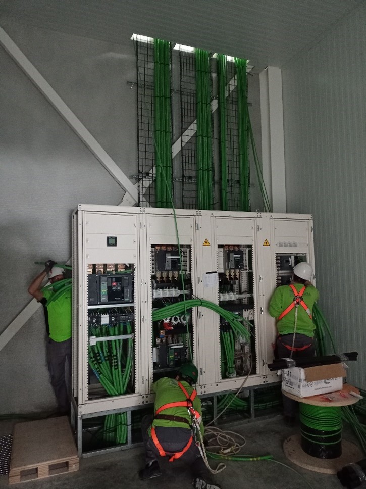 Estudio y montaje de cuadros eléctricos general y subcuadros de toda la nave para alimentar toda la maquinaria que ella alberga. A destacar tenemos el cuadro general de baja tensión (CGBT) con un automático general de 2000A y un automático de línea de socorro de 1000A. En este cuadro se conecta un total de 130 venas de sección comprendida entre 300mm a 70mm. A esta instalación hay que sumar un total de 13 subcuadros y una batería de condensadores de 800KVAR.