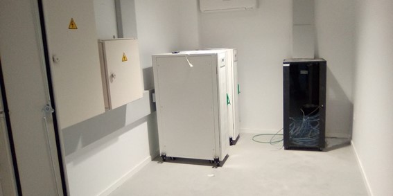 Instalación de 2 RACK distribuidos por la nave y 3 Sistema de Alimentación Ininterrumpida SAI dos Monof. 20 KVA y uno Monof. 15 KVA. Se instala en las oficinas un total de 13 puestos de trabajo con dos puntos de acceso RJ45 con cable UTP cat 6 por cada uno de ellos.