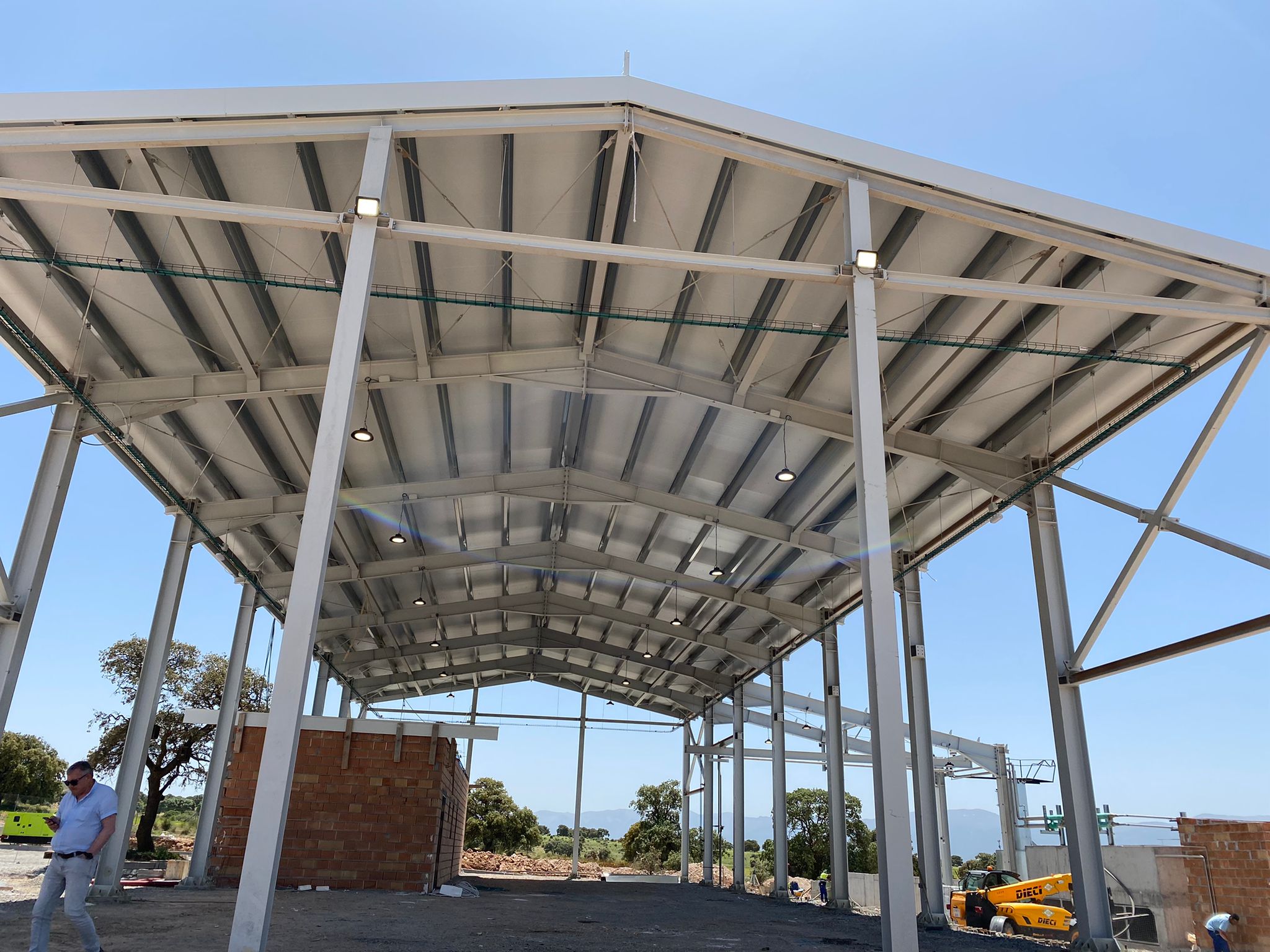 El objeto del proyecto es la instalación de una instalación fotovoltaica aislada de red mediante un sistema de baterías y un grupo electrógeno auxiliar para dar suministro eléctrico a la instalación. La potencia instalada fotovoltaica es de 47,52 kWp ubicada en la cubierta de la nave principal. La instalación dispone de un total de 88 módulos de 540 Wp de la marca JA SOLAR instalados sobre una estructura acoplada sobre una cubierta inclinada tipo sándwich. La conexión se realiza mediante 2 inversores FRONIUS de 20 kW cada uno; éstos están conectados a 3 inversores VICTRON QUATTRO que actúa como generador de red alterna, la cual da alimentación a los 2 inversores FRONIUS. Asimismo, el exceso de producción de la instalación fotovoltaica se almacena en un kit de baterías, 25 en total de 2,5 kWh cada una. Cabe indicar que la instalación está apoyada por un grupo electrógeno de 60 kVAS. Además, se ha realizado la instalación eléctrica e iluminación de la nave.