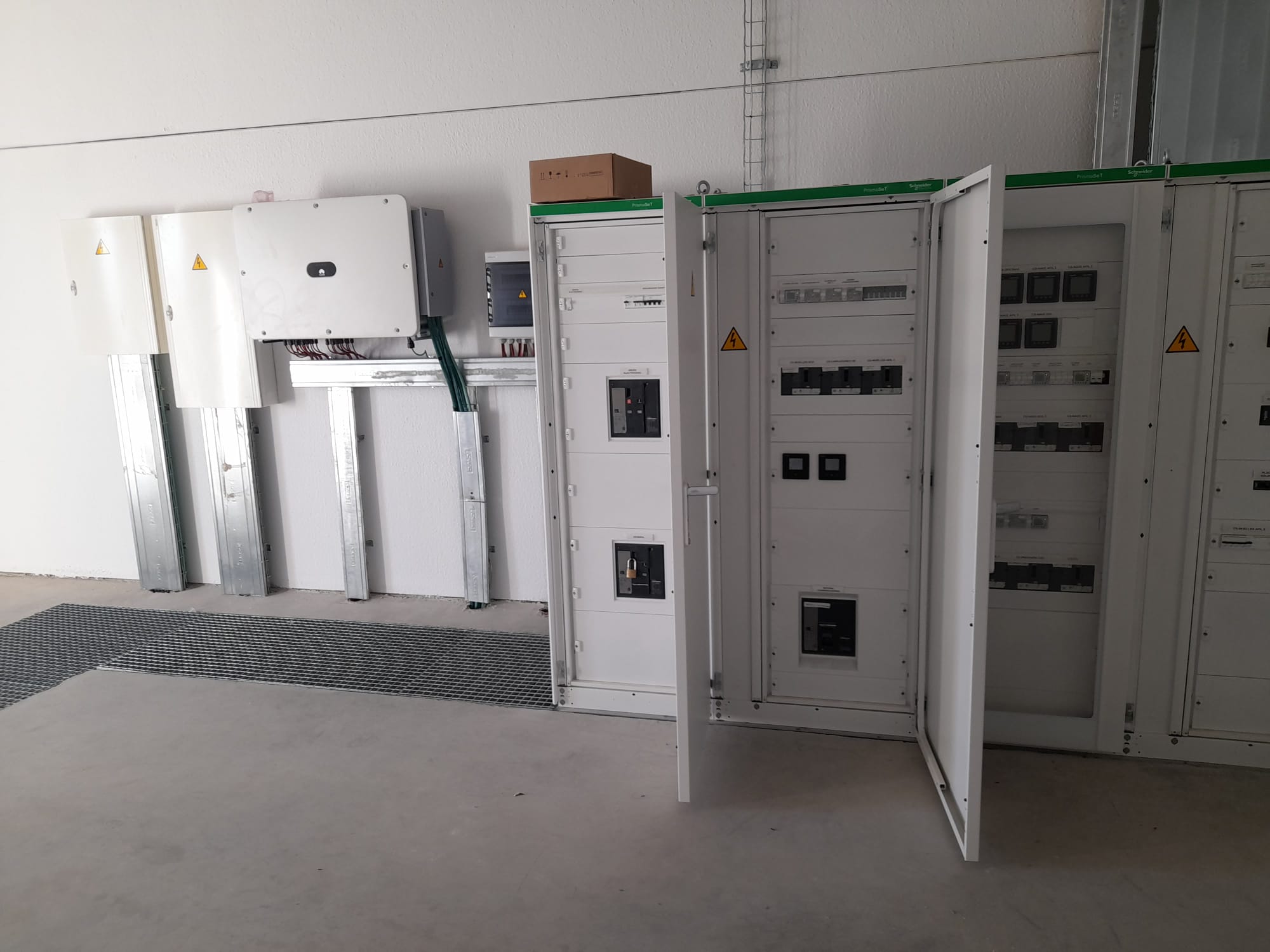 Instalación de cableado y canalización, cuadros eléctricos, iluminación, centro de transformación de 1.000 kVAr y centro de seccionamiento, fotovoltaica,cargadores de vehículos eléctricos y climatización y ventilación de nave industrial de 22.000 𝑚2 a ESTRELLA LEVANTE.